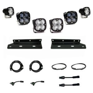 Separate your truck from the pack with the Baja Designs Ford Raptor “SAE” Fog Light Kit for the Ford F-150 Raptor (’21-22). This kit utilizes two Squadron® Sports (3,150 lumens each), two Squadron® SAE (2,420 lumens each), and two S1s (2,375 lumens each). This mounting kit includes two Ford-specific mounting brackets and a wiring harness, allowing you to use your factory switch. Engineered with all-new aspheric projector optics and with our advanced LED technology provides a performance increase in luminous flux of 56% over our previous generation SAE model, the all-new Squadron® SAE delivers 2,420 lumens per light with output reaching up to 15,800 candela at just 29 watts. Designed to meet the current SAE J583 fog lamp requirements, the Squadron® SAE is fully compliant with on-road regulations. This innovative approach allows for a highly controlled light pattern with a sharp cutoff, making them an ideal choice for driving through dust, fog, and inclement weather. Backed by our limited lifetime warranty and 30-day satisfaction guarantee, giving you the ultimate in-purchase protection. This kit comes with everything you need to install. USPTO Reg No. 5,766,659